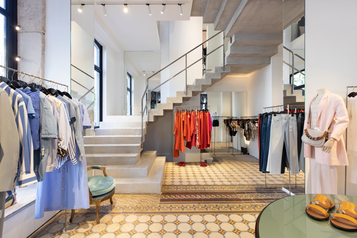 In de kledingwinkel Kelly Shop te Elsene hebben wij een gepolierde betontrap in blokvorm geplaatst.
