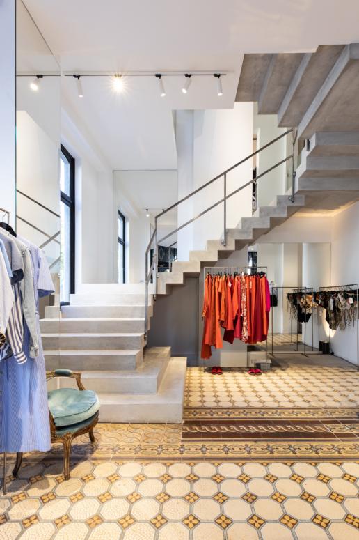 Gepolierde betontrap in blokvorm bij Kelly Shop in Elsene